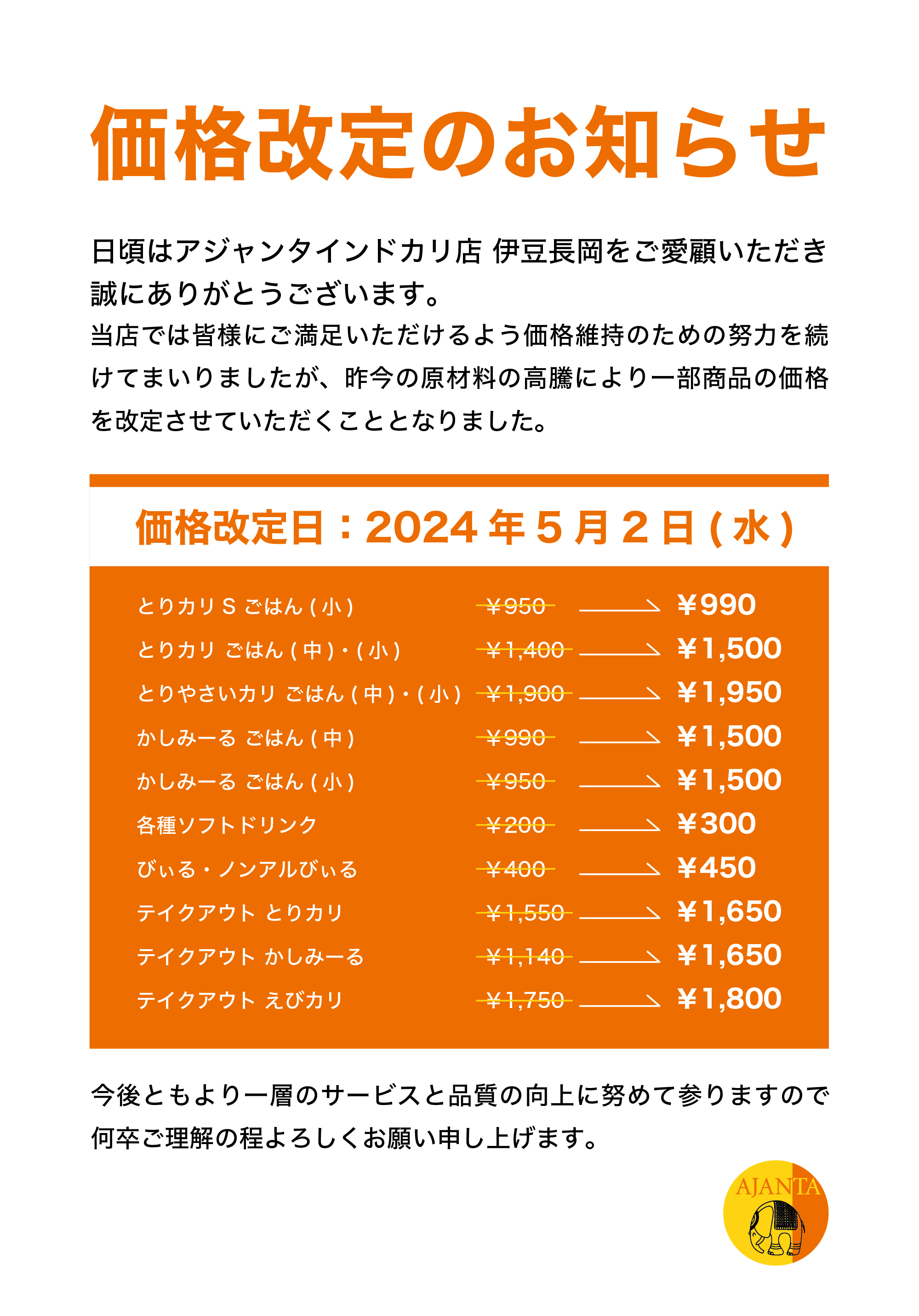 アジャンタインドカリ店 伊豆長岡の公式ホームページか開設致しました。