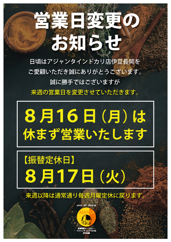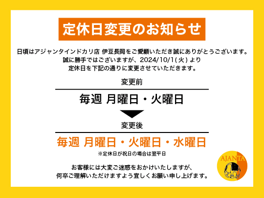 アジャンタインドカリ店 伊豆長岡の公式ホームページか開設致しました。