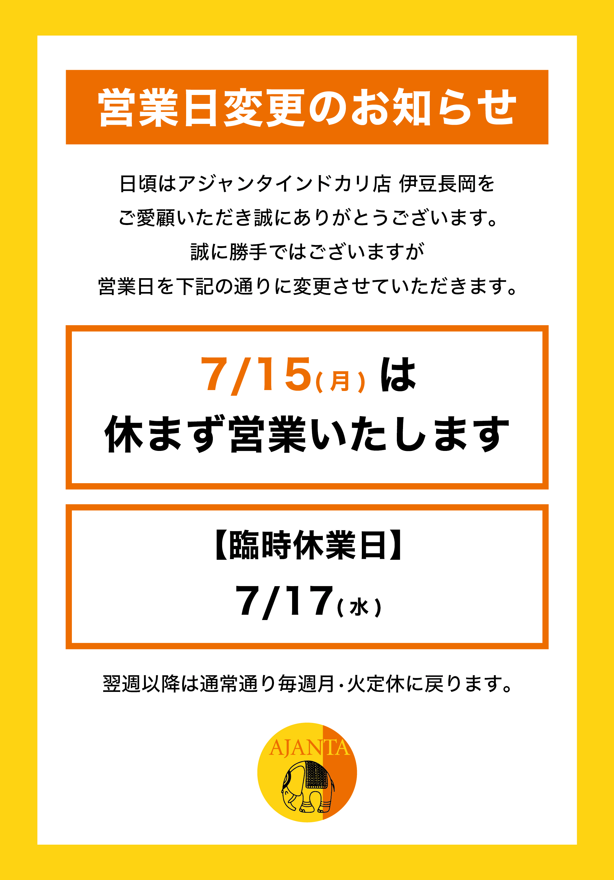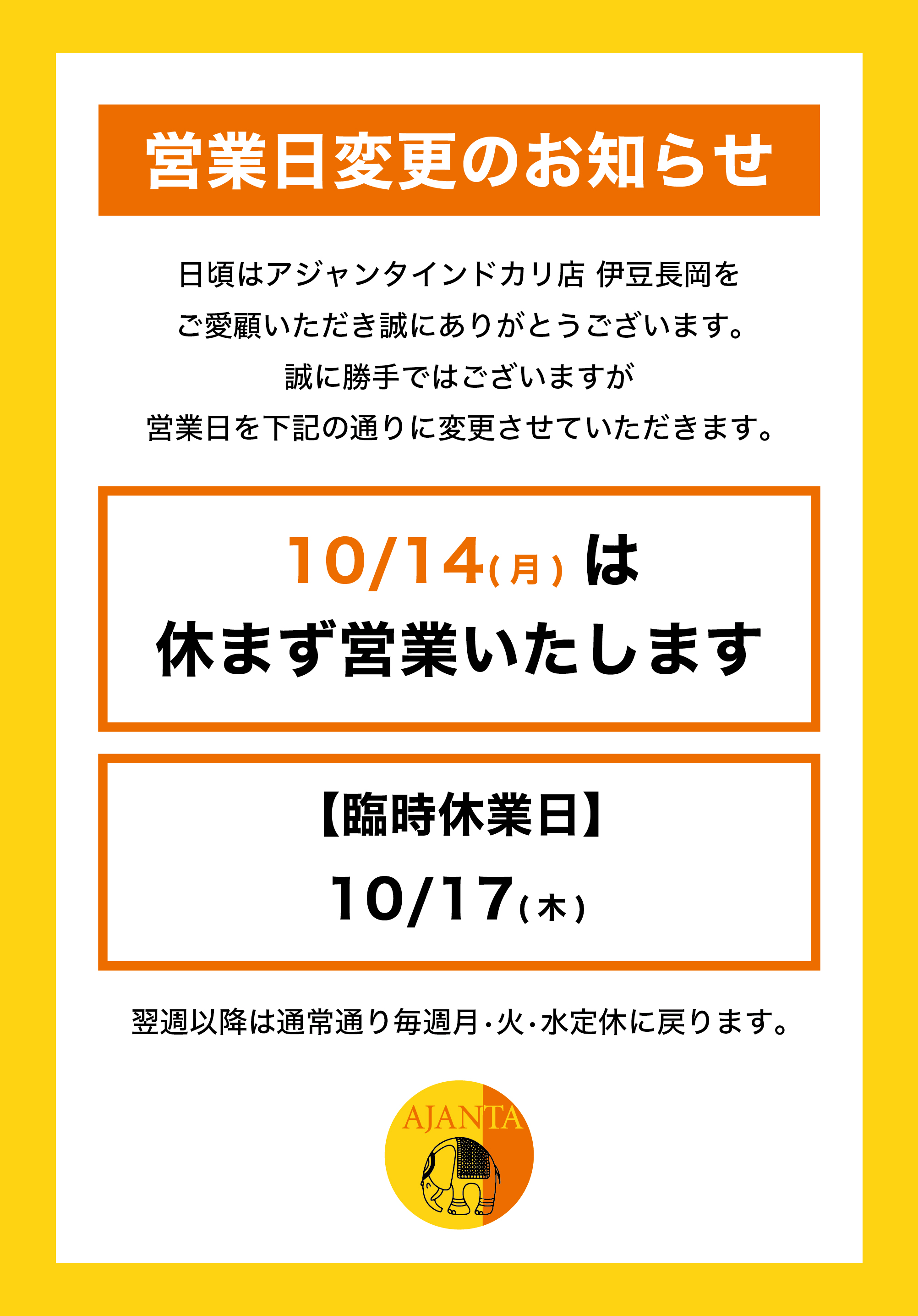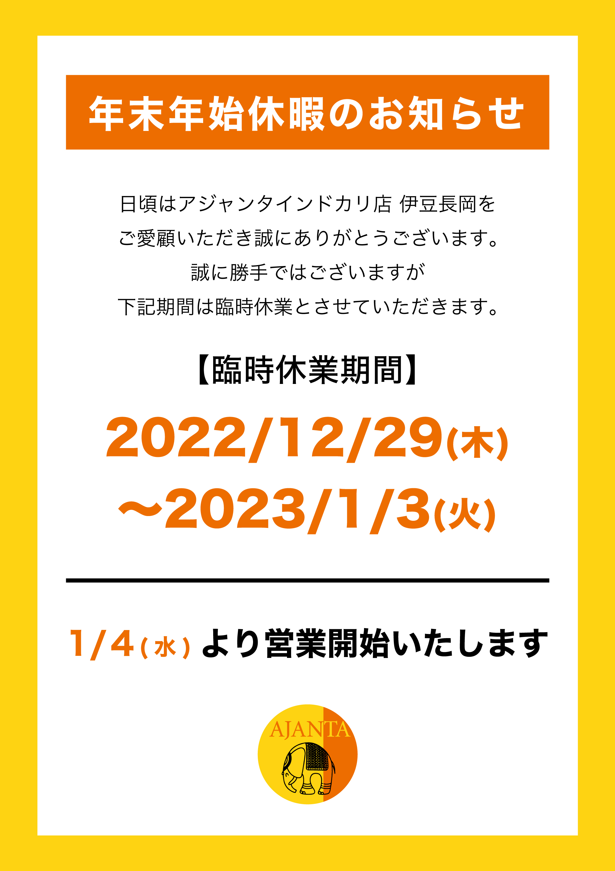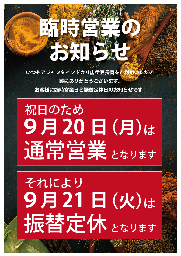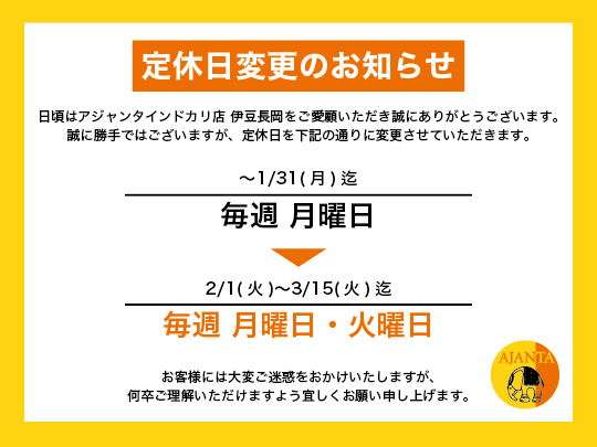 アジャンタインドカリ店 伊豆長岡ホームページ開設